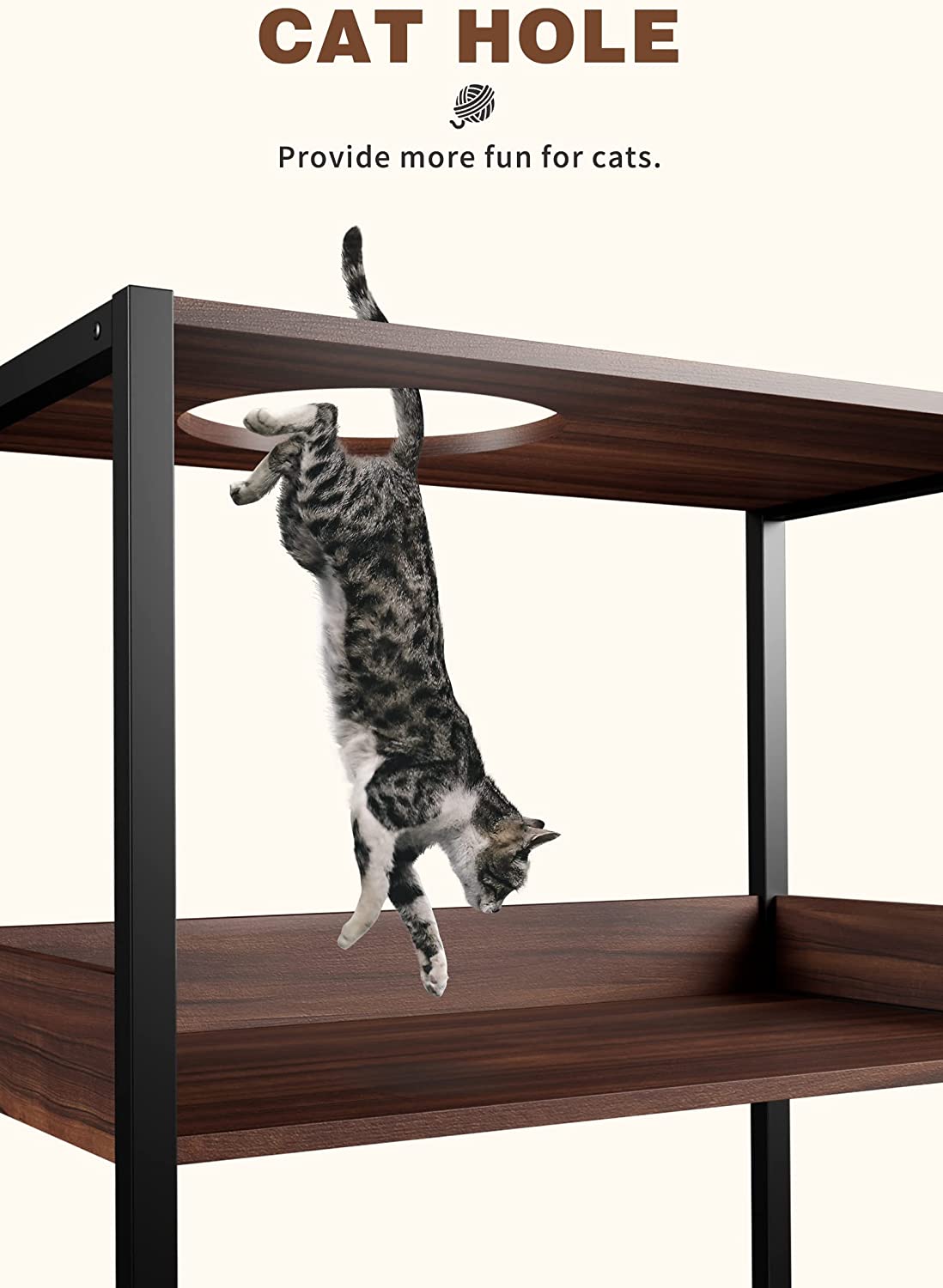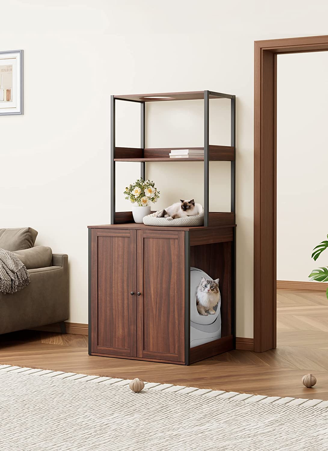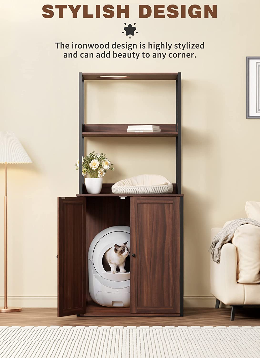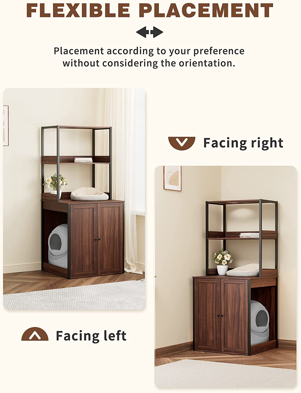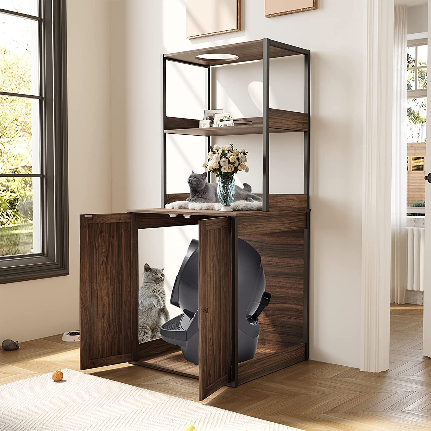 - 【MULTIFUNCTIONAL AUTOMATIC LITTERBOX ENCLOSURE】We make full use of the vertical space and combine the shelf with the litter box enclosure. The inner space of the lower side enclosure is large(33.5"x29.5"x26.6") and perfect for placing the self cleaning cat litter box. The double shelf design can be used as a bookcase, plant shelf and so on. The cat cave can provide more fun.
