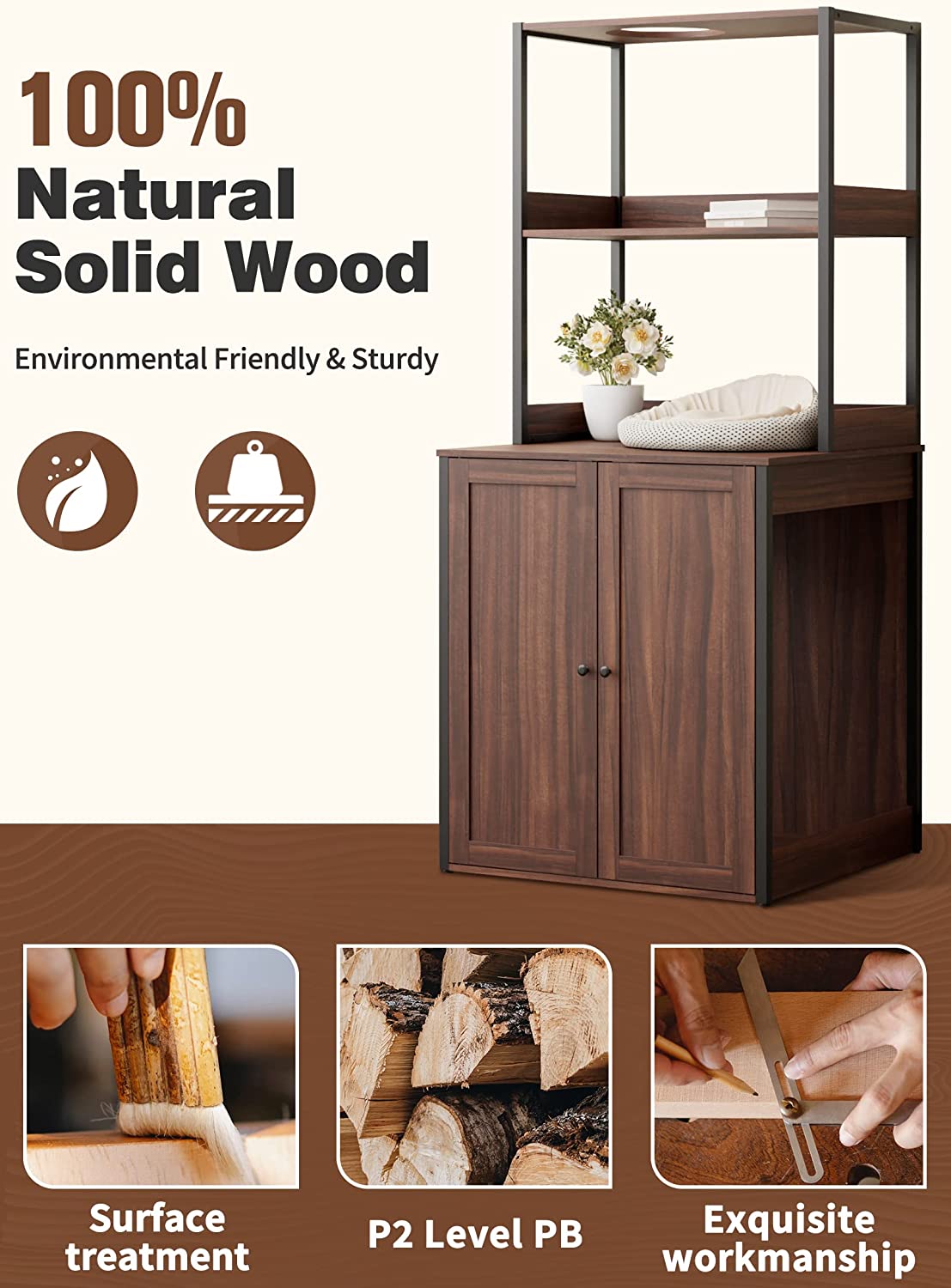 - 【THOUGHTFUL DETAILS】The stickers with the same color and wood grain can hide the screws perfectly. Adjustable feet allow the cabinet to be stable even on uneven ground. Metal handles without barbs is hand-friendly. When you close the door, the magnet will attract the door to prevent it from swinging. The fence prevents items from falling and the automatic litter box from shifting.