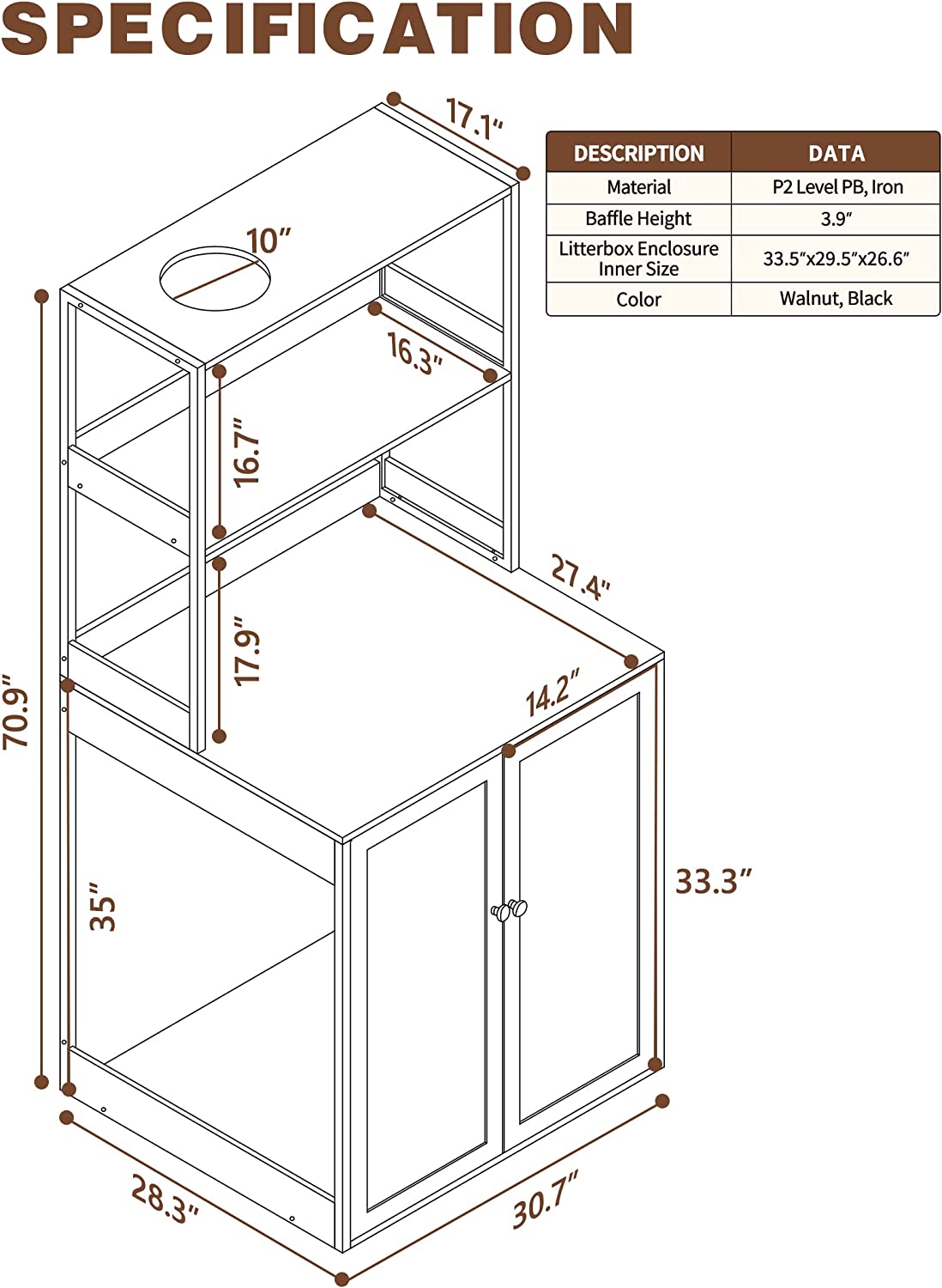 - 【PROVIDE BEST SERVICE】No matter what questions you encounter with this hidden smart litterbox furniture, please feel free to contact us, we will respond within 24 hours and try our best to solve all your problems.